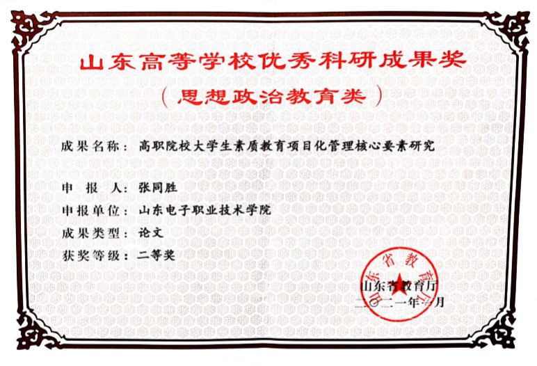 近日,山東省教育廳下發(fā)《關(guān)于公布2020年山東省高等學(xué)校優(yōu)秀科研成果獎(jiǎng)(思想政治教育類(lèi))獲獎(jiǎng)名單的通知》(魯教思函〔2021〕2號(hào)),我校思想政治課教學(xué)部主任張同勝的《高職院校大學(xué)生素質(zhì)教育項(xiàng)目化管理核心要素研究》科研成果榮獲思想政治教育類(lèi)二等獎(jiǎng)。
