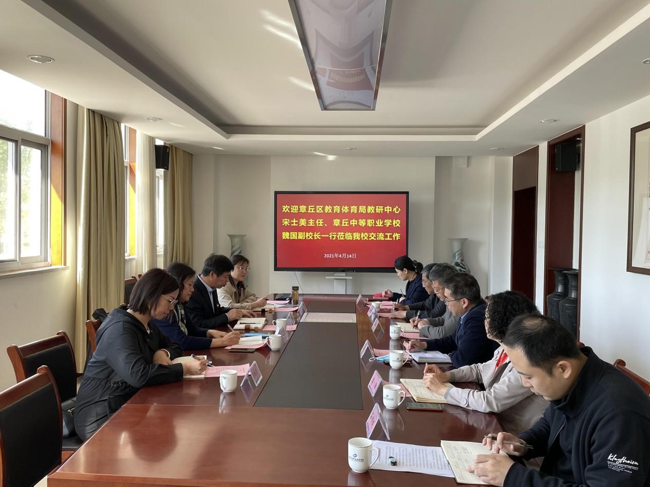 4月14日,章丘中等職業(yè)學校副校長魏國、章丘區(qū)教育體育局教研中心主任宋士美一行4人到我校交流工作。學校副院長梁會亭、招生與就業(yè)指導處處長楊國林、教務處李厥瑾、商務管理系黨政負責人參加了本次交流會。
