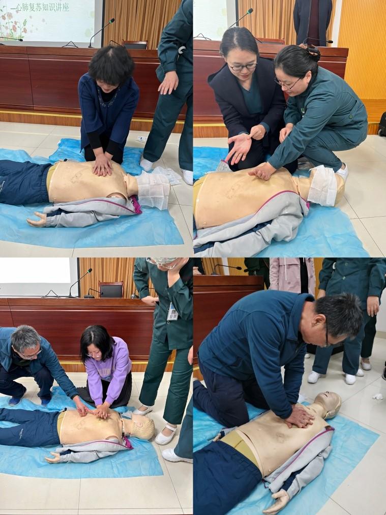 講座分為理論講授、現(xiàn)場演示及實踐操作三部分內(nèi)容。王青通過題目講解、實物展示、現(xiàn)場演示等形式,為老師們詳細(xì)講述急救相關(guān)的理論知識,結(jié)合近年來發(fā)生在身邊的案例,向老師們強(qiáng)調(diào)了應(yīng)急救護(hù)“黃金四分鐘”的重要性。并逐一講解胸外按壓、人工呼吸、海姆立克急救法等搶救操作方法,全面展示了心肺復(fù)蘇和氣道異物梗塞突發(fā)事故的現(xiàn)場救助流程。