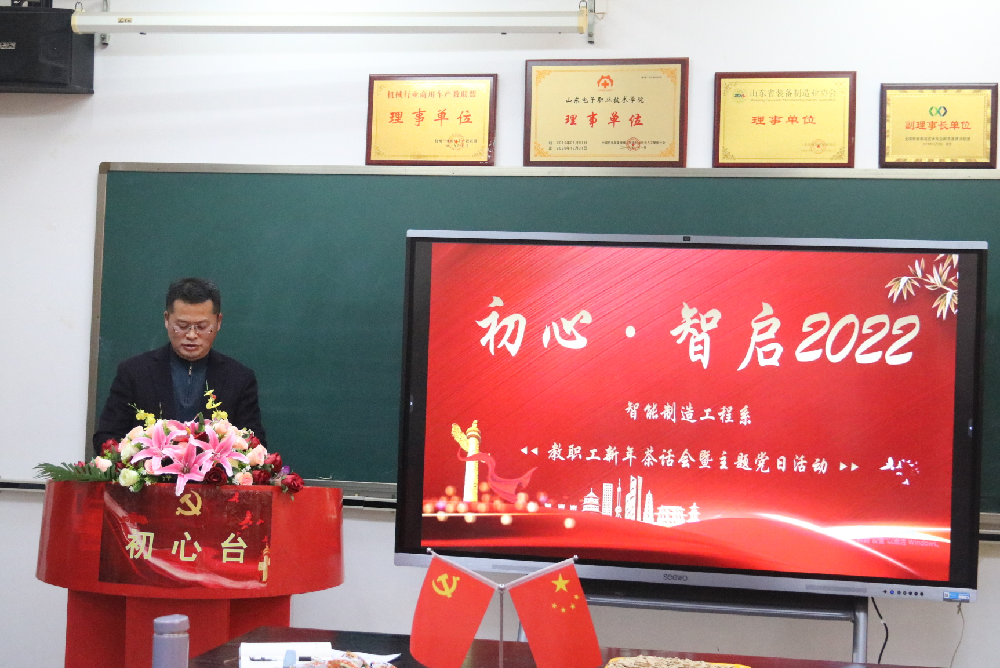 為進(jìn)一步學(xué)習(xí)貫徹黨的十九屆六中全會(huì)精神,積極構(gòu)建和諧校園文化,活躍教職工文化生活,加強(qiáng)團(tuán)結(jié)、增進(jìn)友誼、凝聚力量,12月21日下午智能制造工程系在辦公圖書(shū)樓201室開(kāi)展“初心·智啟2022”教職工新年茶話(huà)會(huì)暨主題黨日活動(dòng)。副院長(zhǎng)孟翠萍出席了活動(dòng),同大家一起回望初心,迎接新的一年。