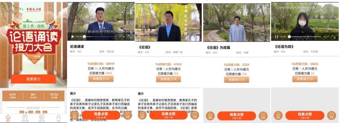 這是山東電子職業(yè)技術(shù)學(xué)院基礎(chǔ)教學(xué)部崔老師作為閱讀引領(lǐng)人,結(jié)合中華優(yōu)秀傳統(tǒng)文化課程,發(fā)動學(xué)生參與《論語誦讀接力大會》,開展的學(xué)校“讀之春”全民閱讀活動。兩周內(nèi),已有三百五十多名學(xué)生發(fā)起傳遞,在孔子網(wǎng)上傳自己的誦讀視頻。
