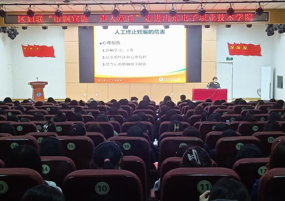 4月25日下午,我校聯(lián)合章丘區(qū)婦女聯(lián)合會(huì)、章丘大學(xué)園區(qū)管理服務(wù)中心在學(xué)術(shù)報(bào)告廳共同開(kāi)展“巾幗宣講 聲入章丘”公益講座活動(dòng)。章丘區(qū)婦幼保健院副院長(zhǎng)、主任醫(yī)師黃艷,山東凌岳律師事務(wù)所主任商苗苗律師分別進(jìn)行講授。我校輔導(dǎo)員和女大學(xué)生等340余人參加講座。