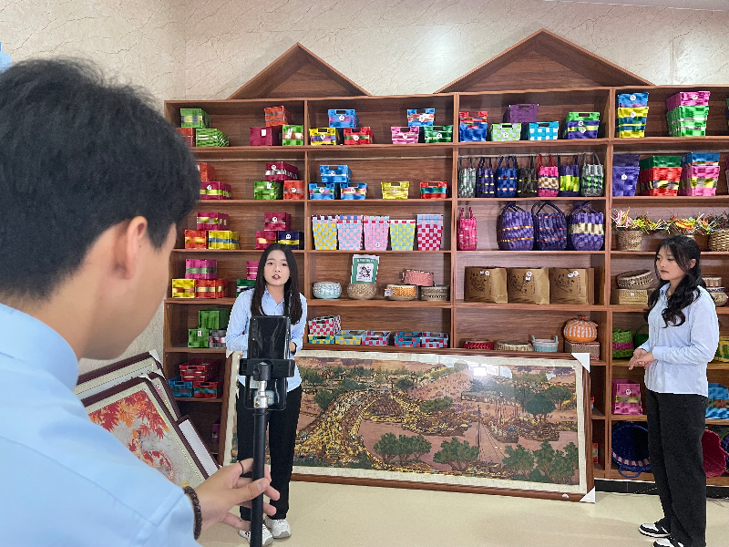 活動現(xiàn)場,由殘疾人托養(yǎng)中心的學員們親手制作的鉆石畫、掛畫、編織品、抽紙等上百余件手工藝品驚艷到了直播間的眾多粉絲,每種款式只有一件,深受大家的喜愛。這些手工作品都是殘障人士忙活好幾天甚至耗時一年多,克服種種困難才制作完成的。兩位主播激情澎湃向直播間的粉絲細心講解,一一展示殘疾人的手工藝品,從產(chǎn)品的制作工藝講到殘疾人自強不息的故事,還現(xiàn)場直播了殘疾人手工作品制作過程。市場營銷專業(yè)的同學們發(fā)揮專業(yè)特長,投身基層,在社會實踐中長知識、增才干、作貢獻。