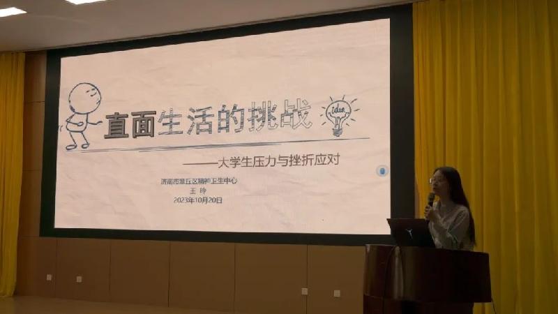 章丘區(qū)精神衛(wèi)生中心工會主席,精五區(qū)胡曉花主任為同學們帶來《大學新生如何做好心理保健-焦慮抑郁情緒的早期識別》講座,帶領同學們認識焦慮和抑郁情緒以及日常緩解不良情緒的方法。王玲醫(yī)生的報告以《直面生活的挑戰(zhàn)–大學生壓力與挫折》為主題,引導同學們結合自身情況正確認識壓力,學習正確緩解壓力的方法,保持健康和諧的陽光心態(tài)。