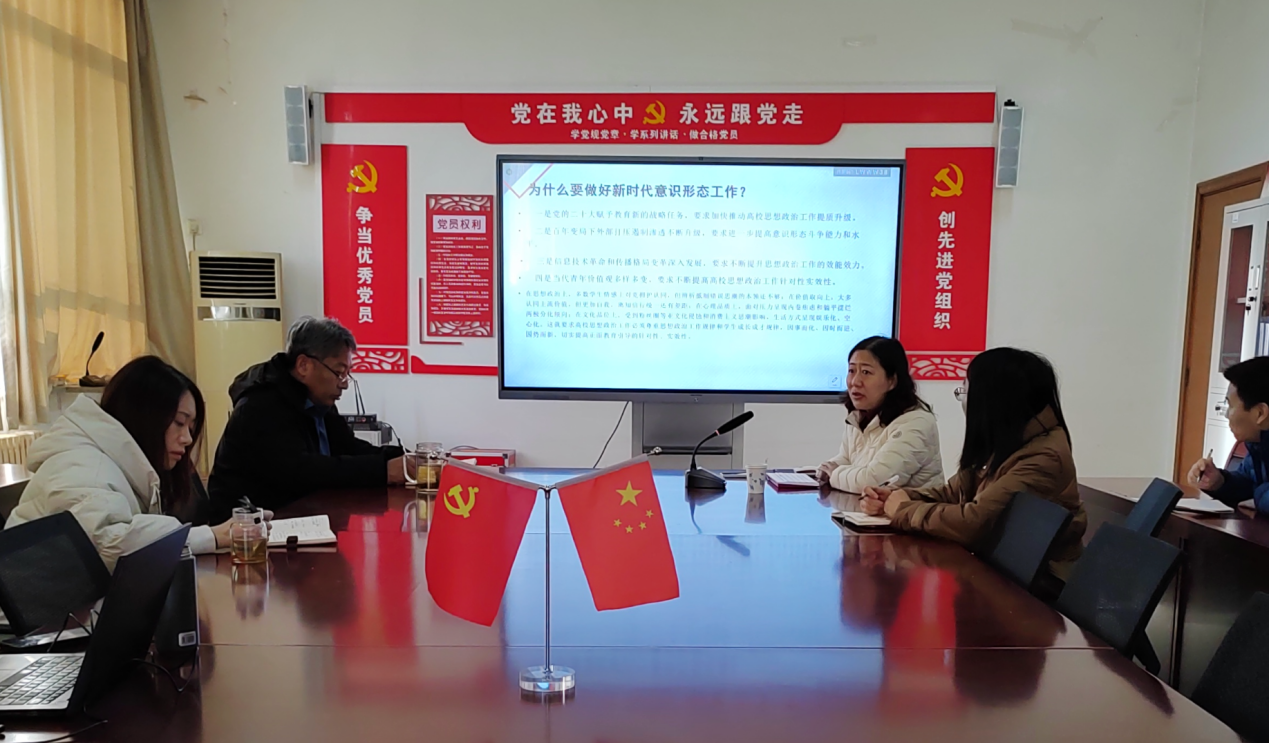 聶鶯以《堅定不移做好新時代意識形態(tài)工作》為主題,重點圍繞“什么是意識形態(tài)、做好新時代意識形態(tài)工作的總要求是什么、怎么才能做好意識形態(tài)工作”等幾個問題,結合學校工作具體實際,全面講解了作為一名高校教師在教育教學過程中,應如何引導學生堅定理想信念,規(guī)劃好人生發(fā)展道路;如何提升輿論引導能力,堅定文化自信;如何增強斗爭意識,筑牢意識形態(tài)安全防線。