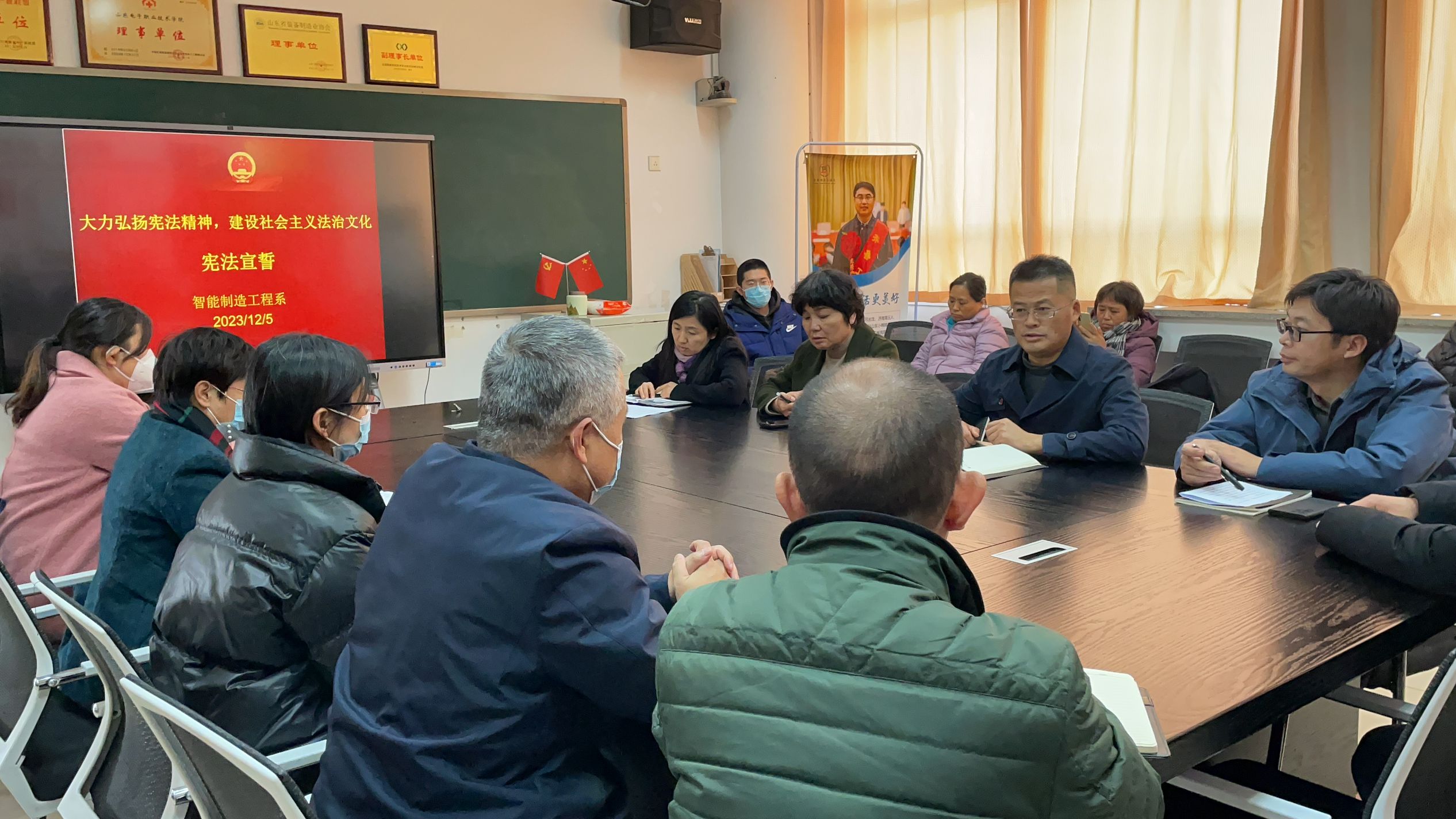 2023年12月4日是我國第十個國家憲法日。為全面貫徹黨的二十大精神,深入學習宣傳貫徹習近平法治思想和中國特色社會主義憲法理論,弘揚憲法精神,維護憲法權(quán)威和尊嚴,進一步增強師生法律意識和法治觀念,12月5日智能制造工程系面向全系教職工舉辦“國家憲法日”宣傳教育活動。