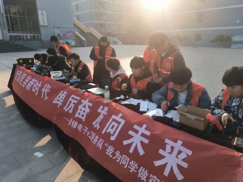 志愿者的存在,讓寒冷的冬日有了持久的暖意。電子與通信工程系雷鋒電子e工服務隊的志愿者在學校餐廳廣場支起維修攤,義務為學校師生貼膜,他們熟練地為不同型號的手機取下舊膜、噴灑清潔劑、貼好新保護膜。