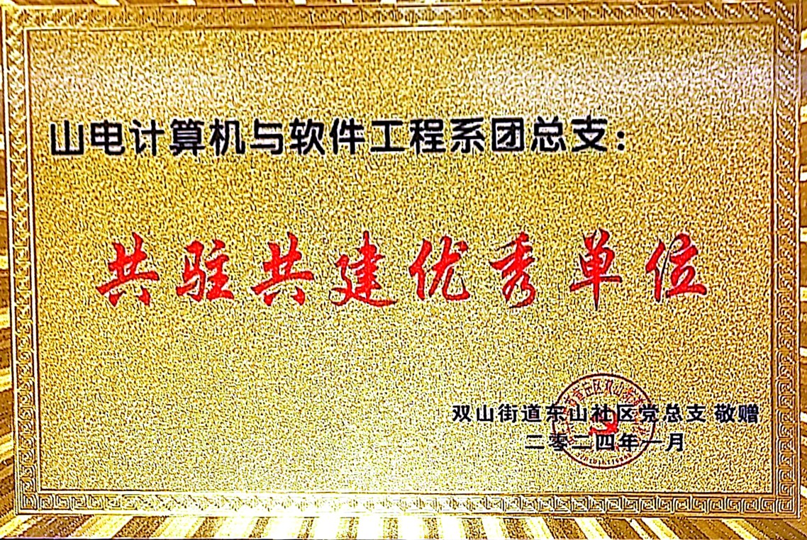 1月26日,計(jì)算機(jī)與軟件工程系團(tuán)總支應(yīng)邀參加章丘雙山街道東山社區(qū)“情暖東山譜新篇 逐夢(mèng)歡歌幸福年”—東山社區(qū)主題黨日暨居民春節(jié)聯(lián)歡會(huì),并被授予“共駐共建優(yōu)秀單位”榮譽(yù)稱號(hào)。