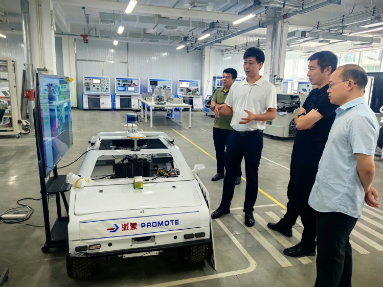 在山東派蒙機電技術(shù)有限公司總經(jīng)理羅映的帶領(lǐng)下,王新新一行三人參觀了公司產(chǎn)品車間。羅映總經(jīng)理向大家詳細介紹了公司多個具有自主知識產(chǎn)權(quán)的智能網(wǎng)聯(lián)車輛核心零部件,包括自動駕駛高性能車載計算平臺SmartPCU、線控底盤系統(tǒng)Stable Chassis、無人駕駛履帶底盤等產(chǎn)品。座談交流中,雙方就技術(shù)服務(wù)、師資培養(yǎng)、課程資源、產(chǎn)教融合、學(xué)生實訓(xùn)、實習(xí)、就業(yè)等方面進行了深入探討。雙方一致認為,要深化校企之間的合作關(guān)系,加強雙方的交流與互動,實現(xiàn)教育資源與產(chǎn)業(yè)優(yōu)勢互補、共同促進人才培養(yǎng)和行業(yè)發(fā)展的雙贏。