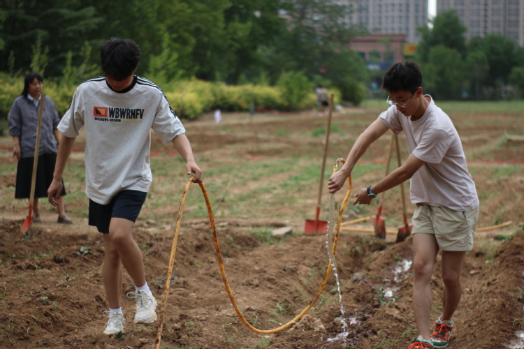 活動(dòng)當(dāng)天,師生們首先認(rèn)真學(xué)習(xí)了耕作知識(shí)和注意事項(xiàng),隨后在專業(yè)人員的指導(dǎo)下,分組合作,開(kāi)始了田間勞作。盡管天氣炎熱,大家依舊精神飽滿,熱情高漲。黨員教師帶頭,師生們拿起鋤頭,分工合作,體驗(yàn)了拔草、挖坑、扶苗、培土等一系列農(nóng)活。在揮灑汗水的同時(shí),大家深刻感受到了勞動(dòng)的魅力和勞動(dòng)精神的傳承。