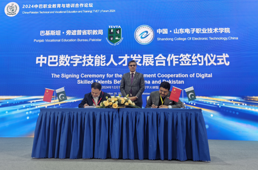 12月19日,2024中巴職業(yè)教育與培訓(xùn)合作論壇在北京巴基斯坦駐華大使館隆重舉辦,山東電子職業(yè)技術(shù)學(xué)院院長(zhǎng)張建臣受邀參加,并在論壇上與巴基斯坦旁遮普省政府技術(shù)教育與職業(yè)培訓(xùn)局簽訂合作協(xié)議。