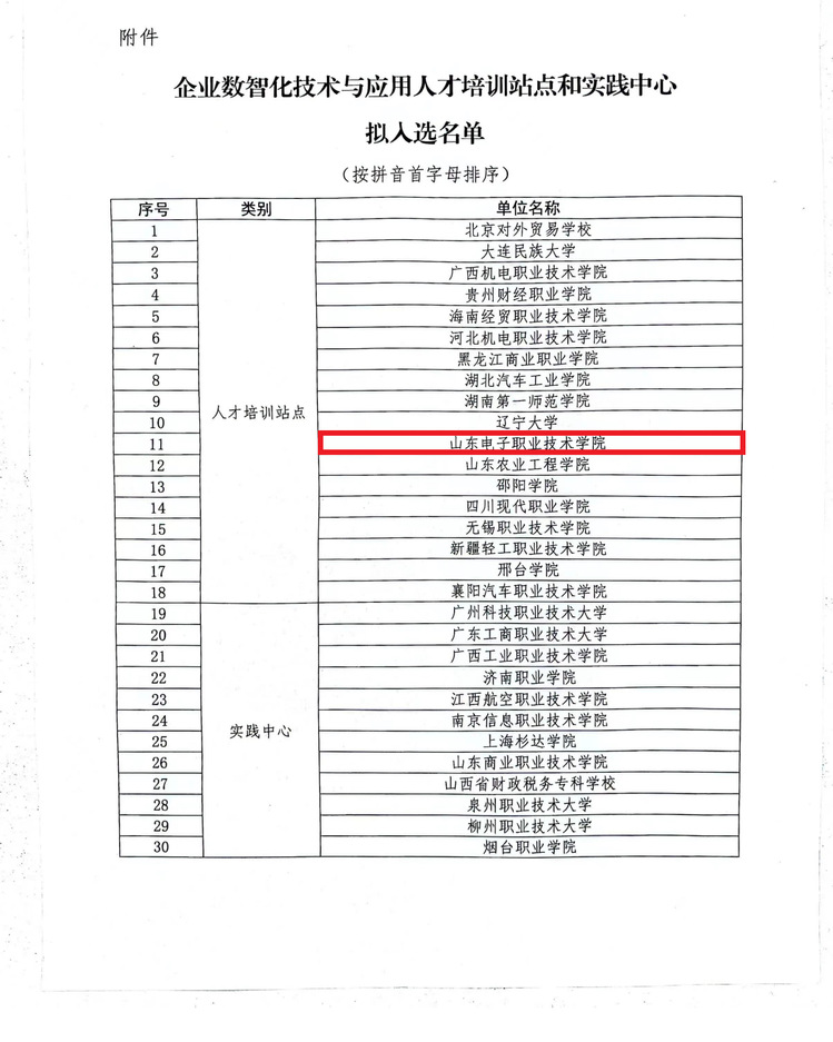 近日,工業(yè)和信息化部教育與考試中心正式發(fā)布《關(guān)于“企業(yè)數(shù)智化技術(shù)與應(yīng)用人才培養(yǎng)專項(xiàng)行動”培訓(xùn)站點(diǎn)和實(shí)踐中心人選名單的公示》。經(jīng)過嚴(yán)格評審,我校成功入選“企業(yè)數(shù)智化技術(shù)與應(yīng)用人才培訓(xùn)站點(diǎn)”。