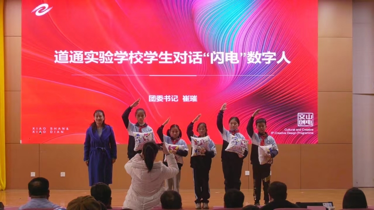 招生與就業(yè)指導處處長袁留政及道通實驗學校的學生代表首次與數(shù)字人“小閃”和“小電”進行了一場別開生面的對話。大家一同體驗了AI的奇妙魅力。