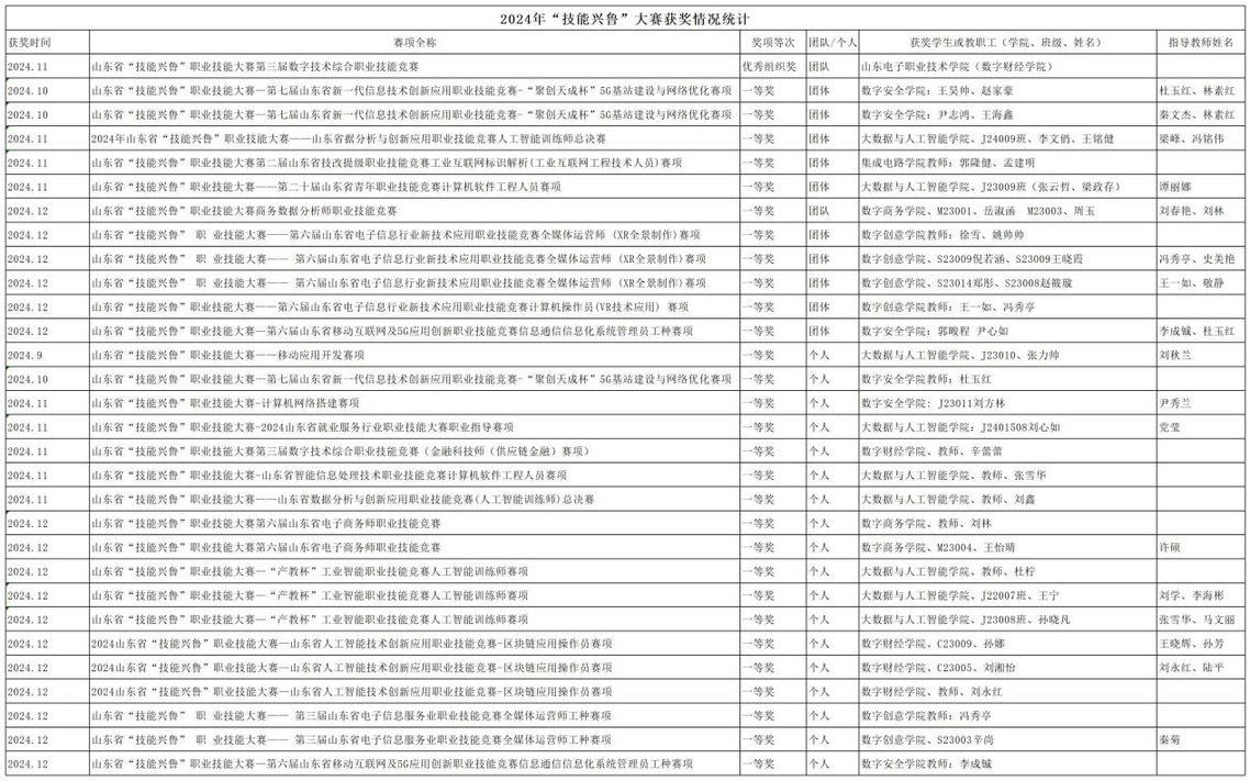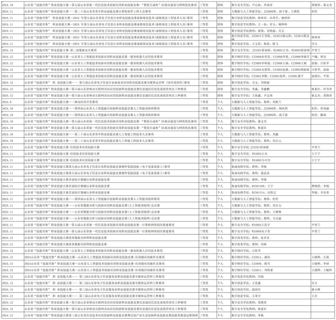 近日,2024年山東省“技能興魯”職業(yè)技能大賽落下帷幕。在整個賽季中,山東電子職業(yè)技術(shù)學(xué)院師生積極參與,展現(xiàn)出了出色的專業(yè)技能和卓越的團(tuán)隊協(xié)作,累計獲獎108項。其中,一等獎29項、二等獎29項、三等獎49項,優(yōu)秀組織獎1項。
