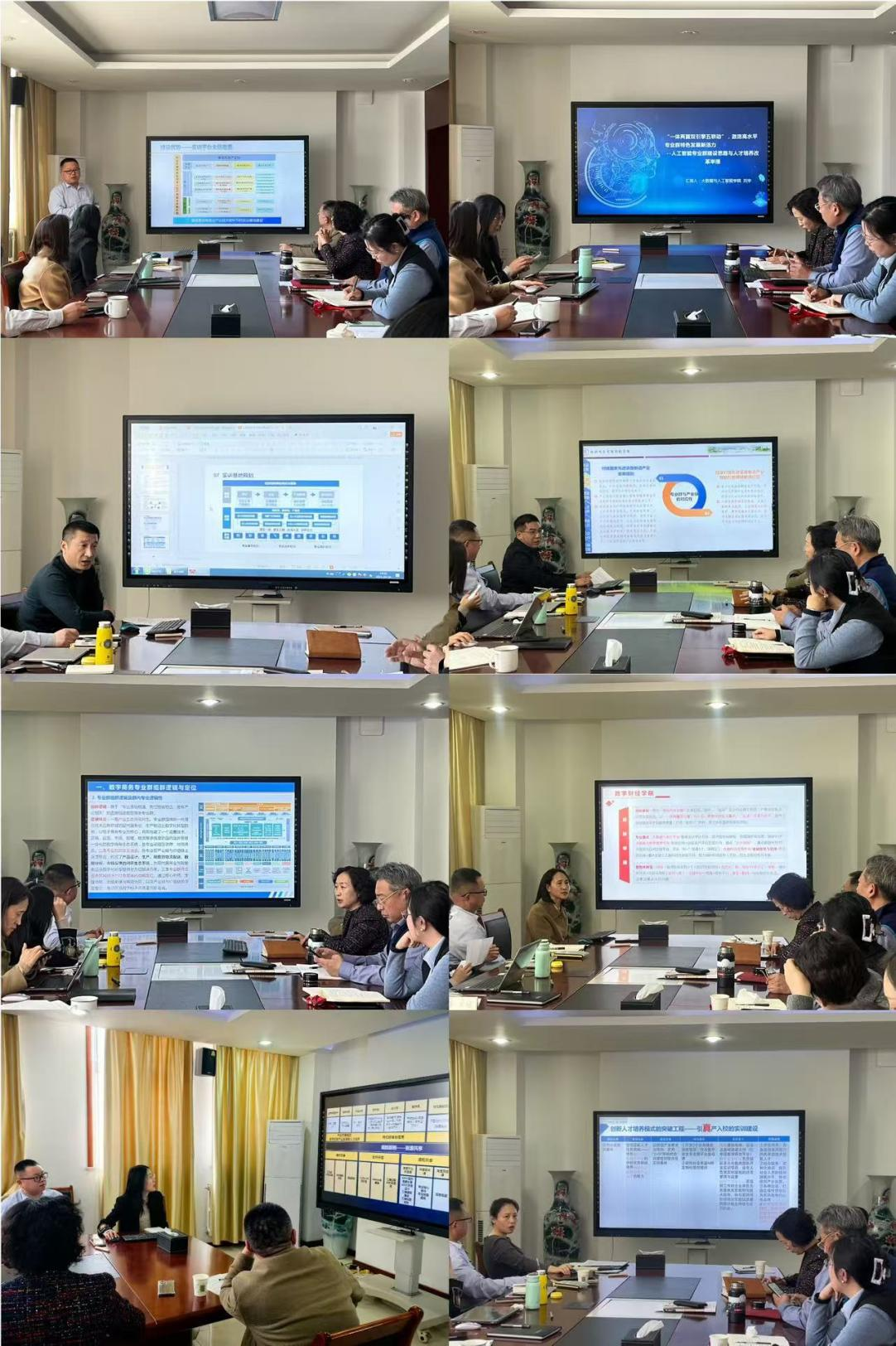 各二級(jí)學(xué)院負(fù)責(zé)人以專業(yè)群建設(shè)為主線,結(jié)合學(xué)校發(fā)展戰(zhàn)略、突破工程、實(shí)訓(xùn)室建設(shè)、校企合作等要點(diǎn)講解專業(yè)群的組群邏輯、優(yōu)勢(shì)與劣勢(shì)、建設(shè)目標(biāo)、落地舉措以及特色創(chuàng)新等關(guān)鍵要素。集成電路專業(yè)群圍繞山東省“強(qiáng)芯”戰(zhàn)略需求,構(gòu)建“設(shè)計(jì)-制造-封測(cè)-應(yīng)用”全鏈條人才培養(yǎng)體系,打造“紅芯匠才”育人品牌。人工智能專業(yè)群以“一體兩翼雙引擎五聯(lián)動(dòng)”為專業(yè)群建設(shè)思路,深化推進(jìn)“1+2+9”系列工程,著力推進(jìn)專業(yè)群特色發(fā)展。低空技術(shù)與應(yīng)用專業(yè)群對(duì)接低空無(wú)人系統(tǒng)運(yùn)維與應(yīng)用關(guān)鍵崗位群,實(shí)施“場(chǎng)景應(yīng)用、四鏈耦合、跨界協(xié)同”人才培養(yǎng)模式。智能控制技術(shù)專業(yè)群面向生產(chǎn)線智能控制與系統(tǒng)集成領(lǐng)域,以促進(jìn)產(chǎn)教融合、協(xié)同創(chuàng)新為突破口,落實(shí)市域產(chǎn)教聯(lián)合體建設(shè)等八項(xiàng)重點(diǎn)任務(wù)。數(shù)字商務(wù)專業(yè)群圍繞國(guó)內(nèi)國(guó)際貿(mào)易一體化發(fā)展格局,聚焦電子產(chǎn)品這一細(xì)分領(lǐng)域,打造“雙實(shí)力、雙驅(qū)動(dòng)、雙創(chuàng)新”的人才培養(yǎng)體系。數(shù)智財(cái)經(jīng)專業(yè)群以數(shù)智化轉(zhuǎn)型為重點(diǎn)、“五金”成果為抓手,推動(dòng)產(chǎn)業(yè)學(xué)院實(shí)體化運(yùn)行,與企業(yè)共建“低代碼人工智能實(shí)踐平臺(tái)”。數(shù)字創(chuàng)意專業(yè)群融合非遺技藝與數(shù)字技術(shù),優(yōu)化改造新建數(shù)字人實(shí)訓(xùn)室,打造山電元宇宙數(shù)創(chuàng)中心,培育跨界創(chuàng)意人才。數(shù)字安全專業(yè)群錨定國(guó)產(chǎn)化技術(shù)生態(tài),構(gòu)建“政行企校”四方聯(lián)動(dòng)機(jī)制,聯(lián)合開(kāi)發(fā)信創(chuàng)課程資源庫(kù),助力國(guó)產(chǎn)軟件技術(shù)人才儲(chǔ)備。