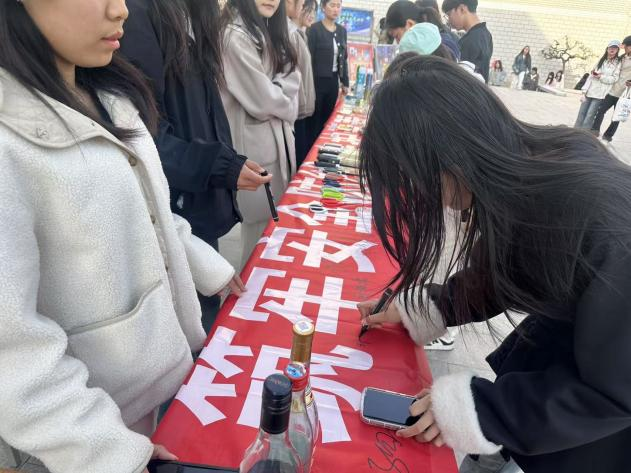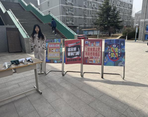 活動(dòng)前期,宿舍樓前掛出安全警示橫幅,“安全校園你我共建,違規(guī)物品拒之門外”“隱患即事故,防范始于心”等標(biāo)語如警鐘長(zhǎng)鳴。過往學(xué)生或細(xì)讀安全守則,或在承諾墻上簽下姓名。這面承諾墻,不僅成為校園文明公約的立體見證,更傳遞著同學(xué)們“安全無小事”的共識(shí)。
