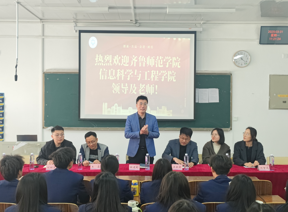 會后,雙方學(xué)院領(lǐng)導(dǎo)、教師代表及56名學(xué)生齊聚2109教室,舉行專本貫通班師生見面交流會。交流會上,杜建彬圍繞“新工科”背景下的網(wǎng)絡(luò)安全人才培養(yǎng)作主題發(fā)言。他詳細(xì)介紹了齊魯師范學(xué)院的學(xué)科建設(shè)成果、網(wǎng)絡(luò)空間安全專業(yè)特色及“產(chǎn)教融合、賽教結(jié)合”的育人模式和科研優(yōu)勢,同時寄語同學(xué)們,要錨定目標(biāo)、腳踏實地,以扎實的專業(yè)能力迎接本科階段的挑戰(zhàn)。兩校師生還圍繞課程銜接、實習(xí)實踐、職業(yè)發(fā)展等話題展開討論。齊魯師范學(xué)院教師團隊針對學(xué)生提出的問題逐一解答,現(xiàn)場氛圍活躍。