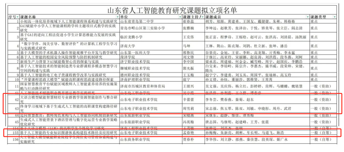 近日,山東省電化教育館公布了山東省人工智能教育研究課題立項(xiàng)名單,我校教師辛蕾蕾主持的《大語言模型賦能智慧財(cái)經(jīng)專業(yè)群教學(xué)資源智能創(chuàng)作與整合研究》與周雪莉主持的《終身學(xué)習(xí)視域下基于生成式人工智能的高職課堂構(gòu)建路徑研究》立項(xiàng)一般資助項(xiàng)目,孟春艷主持的《基于人工智能的專業(yè)知識圖譜體系構(gòu)建技術(shù)路徑及應(yīng)用研究》立項(xiàng)一般自籌項(xiàng)目。
