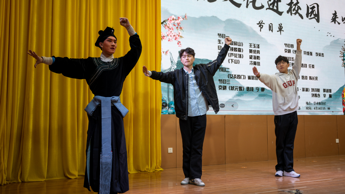 演出過(guò)程中,青年演員還為學(xué)生現(xiàn)場(chǎng)演示“戲曲公開(kāi)課”,指導(dǎo)學(xué)生傳統(tǒng)戲曲中的手眼身法步,現(xiàn)場(chǎng)互動(dòng)氣氛熱烈,一下子拉近了傳統(tǒng)藝術(shù)文化與青年的距離。許多學(xué)生表示:“這么近距離感受京劇還是第一次,比想象中更有趣,原來(lái)傳統(tǒng)文化如此多姿多彩!”