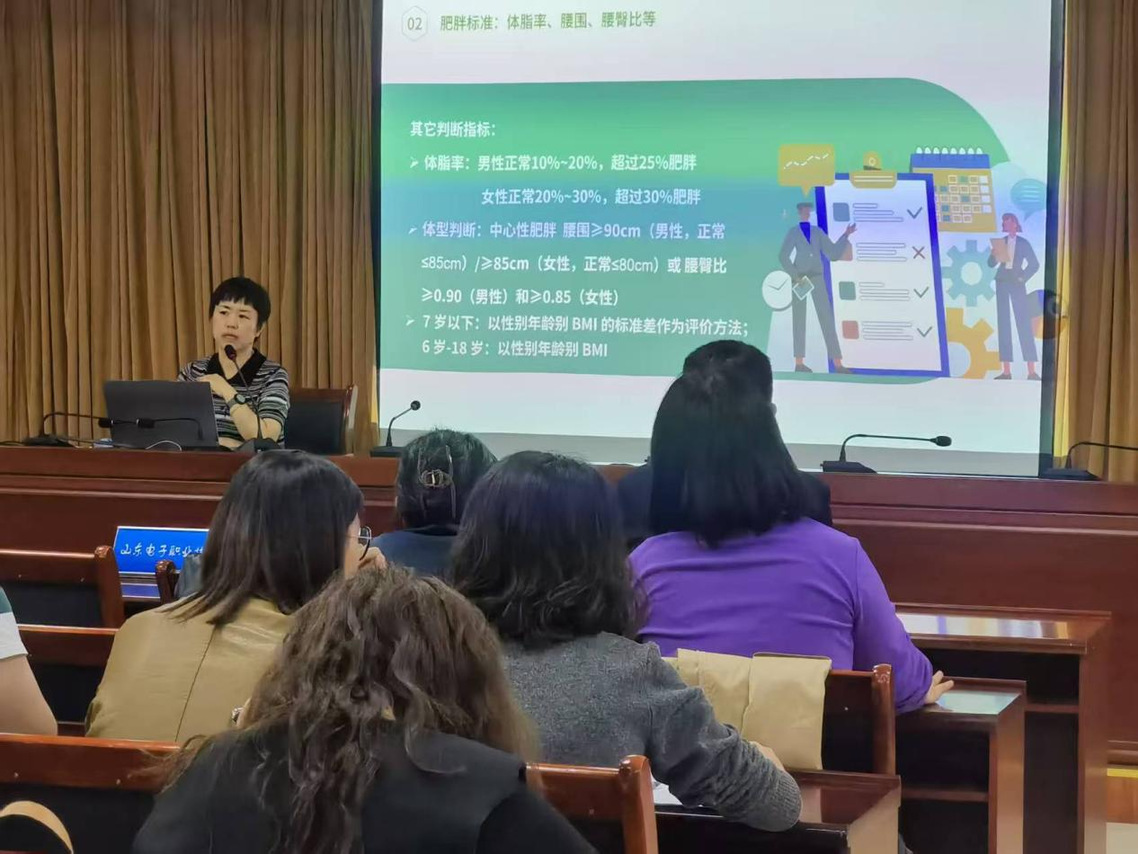 王偉偉圍繞肥胖對人的危害、如何科學(xué)減肥及常見減肥誤區(qū)等方面闡釋了體重控制的重要性。她呼吁大家提高對肥胖問題的重視程度,積極養(yǎng)成堅(jiān)持體育運(yùn)動、合理搭配飲食、保持規(guī)律作息以及維持心情舒暢的良好生活習(xí)慣,從而有效預(yù)防因肥胖引發(fā)的各類健康問題。岳彩賓結(jié)合中醫(yī)理論,向在場師生深入介紹了陽氣在人體生理機(jī)能中的關(guān)鍵作用,以及在日常生活中如何通過科學(xué)合理的方式扶陽固本。他巧妙運(yùn)用中西醫(yī)結(jié)合理念,以通俗易懂的語言,深入淺出地為大家普及健康知識。