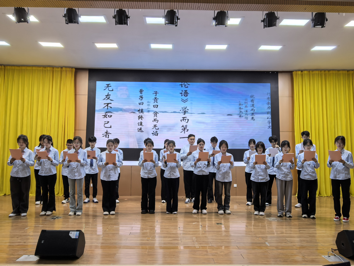 本次啟動儀式主會場設于日照職業(yè)技術(shù)學院,我校圖書館作為高職圖工委成員單位在學術(shù)報告廳設分會場,圖書館全體工作人員及學生代表參加活動。在儀式上,我校閱讀服務與推廣中心的全體同學攜手來自全省其他11所高職院校學生代表,云端齊誦《沐弦歌之教·修君子之學》,大家以《論語》與《大學》為精神紐帶,在“學而時習”中叩問生命真諦,于“修齊治平”中體悟責任擔當,通過經(jīng)典誦讀實現(xiàn)古今對話,彰顯高職院校學子對中華優(yōu)秀傳統(tǒng)文化的傳承與創(chuàng)新。
