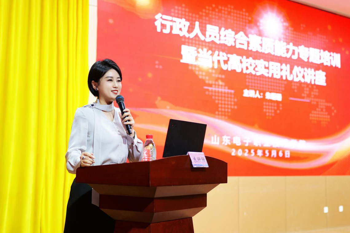 為深入落實(shí)學(xué)校“四個(gè)一”培訓(xùn)體系建設(shè)要求,提升行政人員職業(yè)素養(yǎng),5月6日下午,我校在學(xué)術(shù)報(bào)告廳舉辦行政人員綜合素質(zhì)能力提升專題培訓(xùn)暨當(dāng)代高校實(shí)用禮儀講座。國際注冊高級禮儀培訓(xùn)師、山東省文明禮儀形象大使朱珊珊教授擔(dān)任主講,我校職能部門工作人員,各院系教師代表及學(xué)生代表共400余人參加。