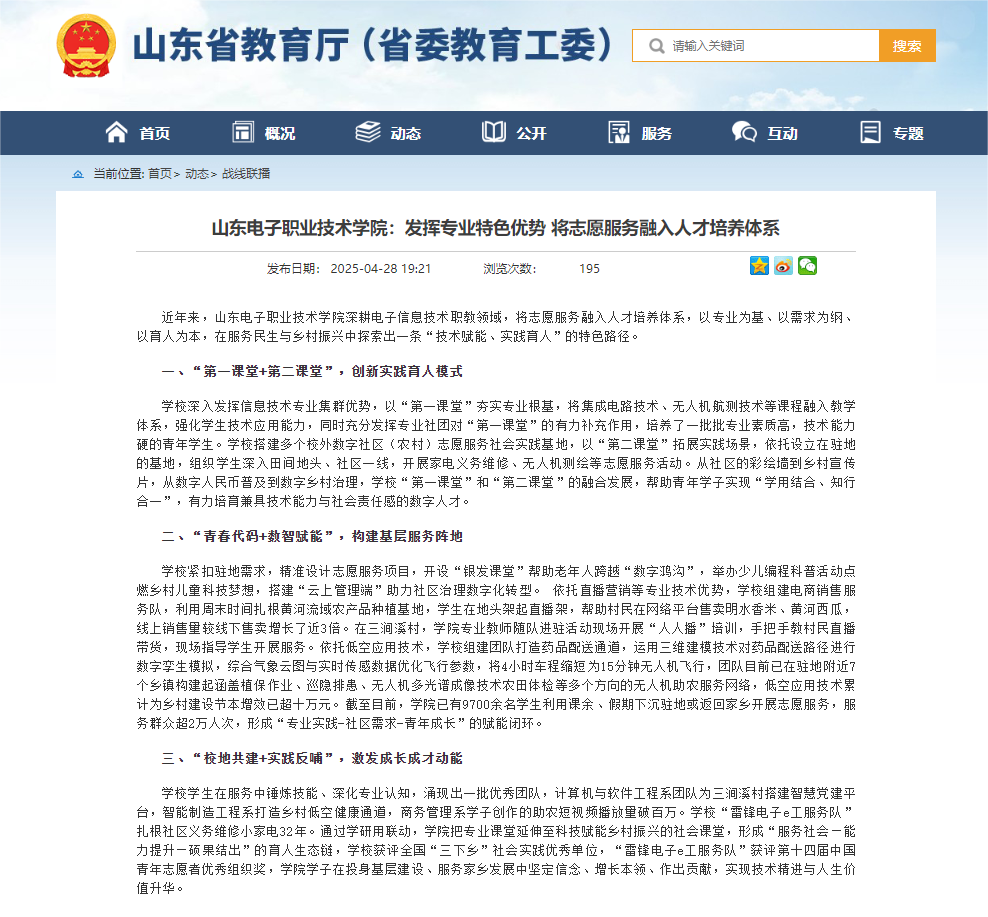 近日,我校發(fā)揮專業(yè)特色優(yōu)勢,將志愿服務(wù)融入人才培養(yǎng)體系典型案例,被省教育廳網(wǎng)站“戰(zhàn)線聯(lián)播”選發(fā)!
