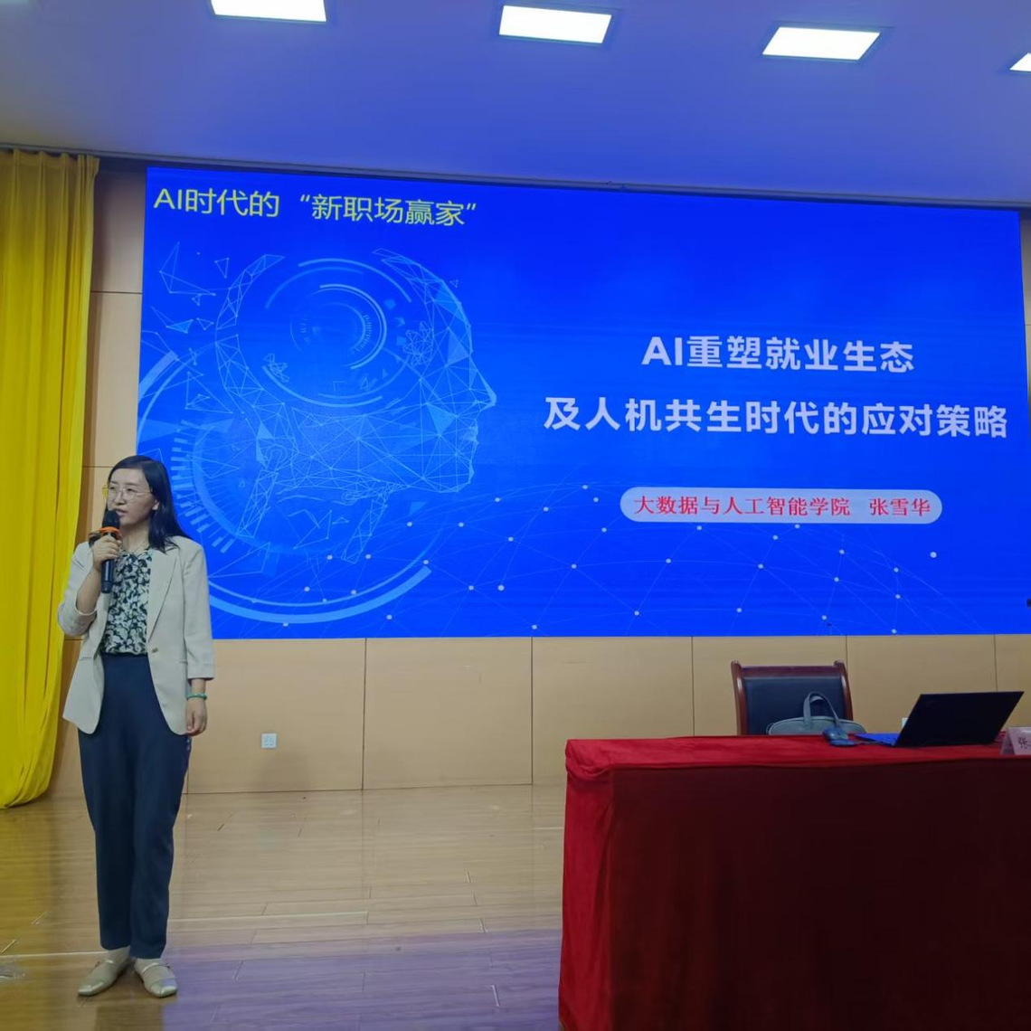 講座以“AI 重塑就業(yè)生態(tài)及人機(jī)共生時(shí)代的應(yīng)用策略”為主題,系統(tǒng)闡釋了人工智能技術(shù)對當(dāng)代就業(yè)市場的顛覆性影響與前瞻性機(jī)遇。張雪華從人工智能的技術(shù)本質(zhì)與發(fā)展脈絡(luò)切入,結(jié)合產(chǎn)業(yè)智能化轉(zhuǎn)型趨勢,深度剖析了AI驅(qū)動下的職場變革圖景。她鼓勵(lì)青年學(xué)子主動突破“技術(shù)恐慌”心理,通過“了解AI技術(shù)邊界—掌握工具使用邏輯—構(gòu)建人機(jī)協(xié)作模式”的進(jìn)階路徑,以“專業(yè)深度×技術(shù)寬度”的復(fù)合型思維應(yīng)對挑戰(zhàn)。