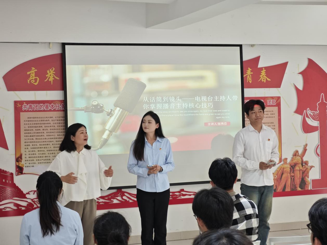 在校求學(xué)期間,張秀巒對播音主持進行了深入鉆研。憑借對專業(yè)的熱愛和大量實踐積累,畢業(yè)后在主播崗位上形成了獨特的語言藝術(shù)風(fēng)格。此次返校,她結(jié)合自身多年工作經(jīng)驗,圍繞“聲臨其境的語言表達藝術(shù)”主題,通過現(xiàn)場示范,詳細講解氣息控制、情感傳遞等核心技巧,同時剖析經(jīng)典作品的演繹邏輯。在指導(dǎo)青年理論學(xué)習(xí)小組演講選手時,她著重強調(diào) “思想深度與表達技巧的融合”,從演講稿撰寫到舞臺呈現(xiàn),給予系統(tǒng)且實用的建議。實踐展示環(huán)節(jié)中,張秀巒對參訓(xùn)學(xué)生的發(fā)聲技巧、情感張力進行個性化指導(dǎo),特別傳授聲音塑形的進階方法。有參賽選手表示:張老師的指導(dǎo)打通了理論到實戰(zhàn)的通道,特別是觀點輸出的藝術(shù)化處理技巧,極大提升了備賽效率。