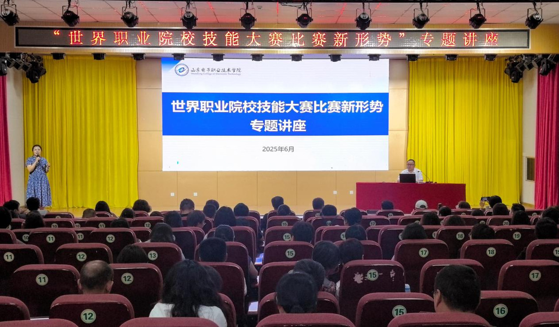 為深入貫徹落實(shí)《教育強(qiáng)國(guó)建設(shè)規(guī)劃綱要(2024—2035年)》的總體要求,進(jìn)一步提升學(xué)校在職業(yè)院校技能大賽中的競(jìng)技水平,充分發(fā)揮職業(yè)院校技能大賽的引領(lǐng)和示范作用,切實(shí)提高學(xué)校人才培養(yǎng)質(zhì)量,6月3日,學(xué)校在學(xué)術(shù)報(bào)告廳舉行2025年世界職業(yè)院校技能大賽比賽新形勢(shì)專(zhuān)題講座。教務(wù)處、各系部、基礎(chǔ)教學(xué)部共170余名教師參加此次活動(dòng)。此次講座特邀電子與通信工程系主任郭隆健擔(dān)任主講人。