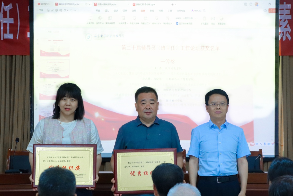 儀式上,輔導(dǎo)員代表王浩、班主任代表王潔分別圍繞“大學(xué)生心理危機(jī)干預(yù)”和“產(chǎn)教融合背景下的就業(yè)難題破解”進(jìn)行主題分享。輔導(dǎo)員代表申玥、李冬梅展示了2024年山東高校輔導(dǎo)員創(chuàng)新項目獲獎案例,案例聚焦“特殊群體的學(xué)風(fēng)建設(shè)”與“復(fù)雜心理危機(jī)干預(yù)”,彰顯了學(xué)校輔導(dǎo)員隊伍解決實際問題的專業(yè)智慧與責(zé)任擔(dān)當(dāng)。