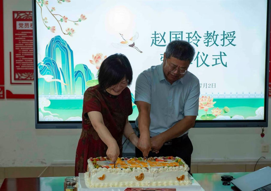 現(xiàn)場(chǎng)溫情流淌,劉學(xué)老師代表院部向趙老師獻(xiàn)上鮮花,并以“高山仰止,景行行止”贊嘆其教學(xué)風(fēng)范。一曲深情的《沂蒙頌》,承載了全院同仁的誠(chéng)摯祝福。隨后,齊學(xué)民主席代表工會(huì)贈(zèng)送榮休禮物,任文娟主任等來(lái)賓先后發(fā)言,深情稱(chēng)頌趙老師的教育精神與師者情懷。儀式中,滿載心意的榮休蛋糕驚喜亮相。在場(chǎng)人員共同分享這份甜蜜,不僅傳遞著對(duì)趙老師的深深祝福,更象征著教育事業(yè)的薪火相傳。