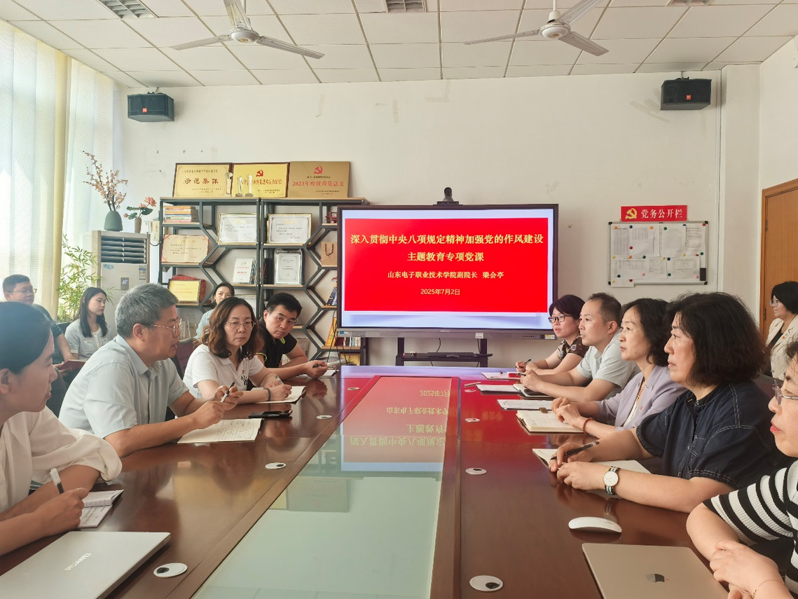 為深入學(xué)習(xí)貫徹習(xí)近平新時代中國特色社會主義思想,進(jìn)一步落實全面從嚴(yán)治黨要求,強(qiáng)化黨員干部紀(jì)律意識和作風(fēng)建設(shè),7月初,山東電子職業(yè)技術(shù)學(xué)院副院長梁會亭在408會議室講“深入貫徹中央八項規(guī)定精神,加強(qiáng)黨的作風(fēng)建設(shè)”專題黨課,商務(wù)管理系黨總支全體黨員參加。