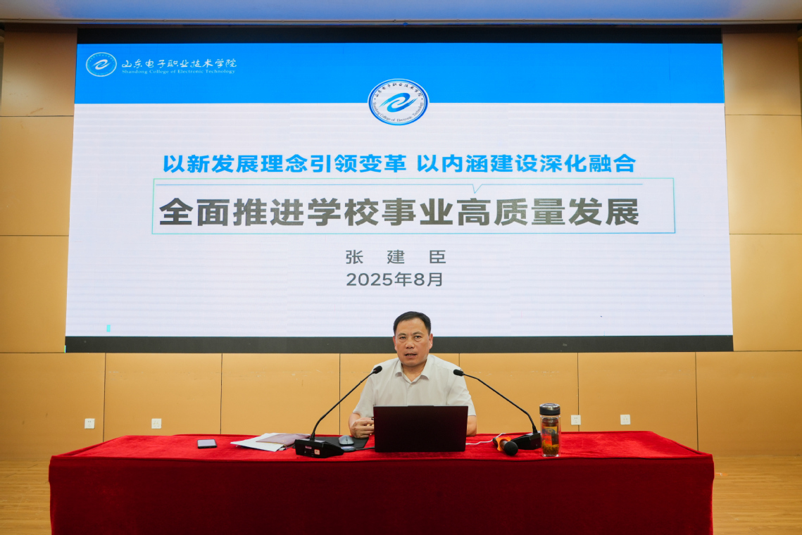 院長張建臣做了題為《以新發(fā)展理念引領(lǐng)變革 以內(nèi)涵建設(shè)深化融合 全面推進(jìn)學(xué)校事業(yè)高質(zhì)量發(fā)展》的報告。他指出,召開新學(xué)期工作研討會的目的,一是為了檢視大家前期參加各類培訓(xùn)的學(xué)習(xí)成效,看能否學(xué)以致用,將理論轉(zhuǎn)化為謀劃能力;二是通過研討開展“練兵”,提高干部的報告水平,要人人能為學(xué)校代言,人人都成業(yè)內(nèi)專家。他結(jié)合中國職教發(fā)展歷程和職教辦學(xué)的新目標(biāo)、新要求、新標(biāo)準(zhǔn),條分縷析地剖析了職業(yè)教育政策的“八個變化”,形勢發(fā)展的“兩個變化”,學(xué)校面臨的“四個發(fā)展紅利”,闡述了“五個新理念”。要求大家站在“職教何為”的高度思考“山電何為”,并對干部們提出提升學(xué)習(xí)力、認(rèn)知力等“十力”要求。