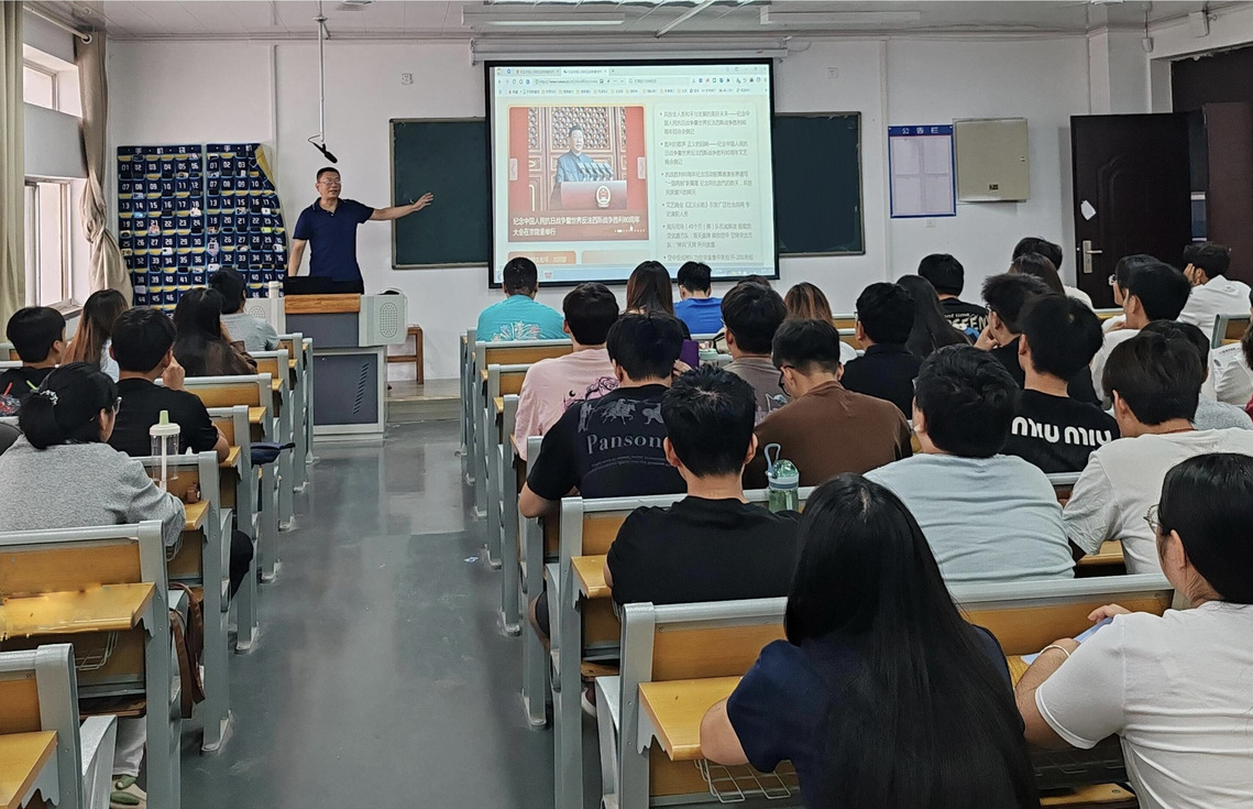 “形勢(shì)與政策”教研室在“形勢(shì)與政策”等課程教學(xué)中,以“紀(jì)念抗戰(zhàn)勝利 堅(jiān)定民族信念”為主題,聚焦學(xué)習(xí)習(xí)近平總書記在紀(jì)念大會(huì)上的重要講話,引導(dǎo)學(xué)生深刻理解中國人民抗日戰(zhàn)爭的重大貢獻(xiàn)和歷史啟示、清醒認(rèn)知今天人類又面臨和平還是戰(zhàn)爭的抉擇、堅(jiān)定確立“中華民族偉大復(fù)興勢(shì)不可擋!人類和平與發(fā)展的崇高事業(yè)必將勝利!”的民族信念,激勵(lì)學(xué)生弘揚(yáng)偉大抗戰(zhàn)精神、為推進(jìn)民族復(fù)興偉業(yè)而團(tuán)結(jié)奮斗。
