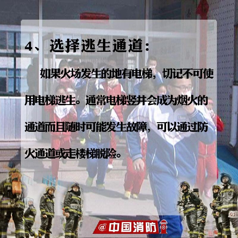 不只是黃綠色,火場冒出的帶顏色的煙霧通常會蘊(yùn)含強(qiáng)烈毒性。此時,火場外的人必須逆風(fēng)向撤離現(xiàn)場,被困人員應(yīng)拿濕毛巾捂住口鼻,有條件的要戴上防毒面具,防止中毒昏迷。 三、發(fā)生火災(zāi),如何安全逃生? 火災(zāi)降臨時人們?nèi)菀左@慌失措做出錯誤判斷導(dǎo)致錯失最佳逃生時機(jī)發(fā)生火災(zāi),如何安全逃生?↓↓↓