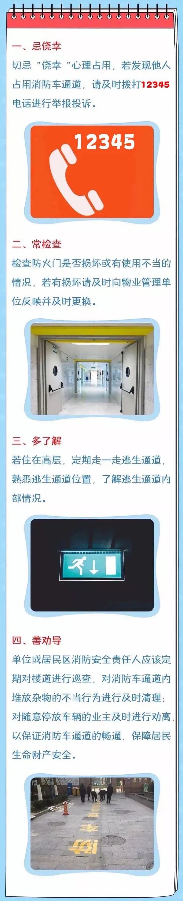 如果發(fā)現(xiàn)消防通道被占用,可以撥打12345電話進(jìn)行投訴。