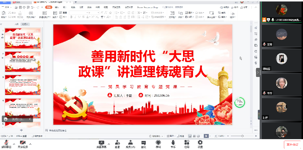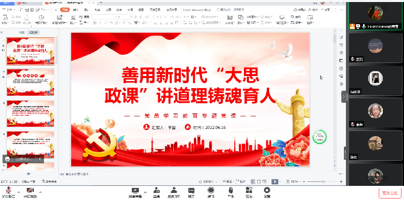 為深入推進(jìn)“全員育人、全過(guò)程育人、全方位育人”,把立德樹(shù)人根本任務(wù)進(jìn)一步貫穿到思想政治教育教學(xué)的全過(guò)程,6月16日下午,財(cái)經(jīng)金融系教師黨支部書記李霞采用騰訊會(huì)議以“善用新時(shí)代‘大思政課’講道理鑄魂育人”為題講授黨課。