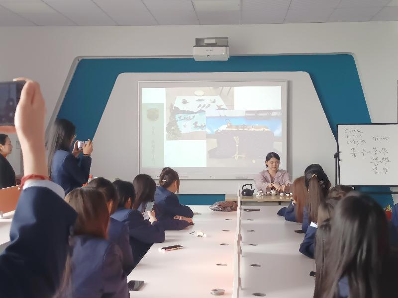 課上,張蕾老師從茶的起源、發(fā)展,到茶的類別、飲法,再到?jīng)_泡茶葉的基本程序和品茶步驟,一一為學(xué)員們進(jìn)行講解。學(xué)員們也在張蕾老師的帶領(lǐng)下認(rèn)識(shí)到茶道是一種文化,也是一種形式與思想高度統(tǒng)一的品茗文化。通過沏茶、賞茶、飲茶,可以增進(jìn)友誼,美心修德,學(xué)習(xí)禮法,修身養(yǎng)性。