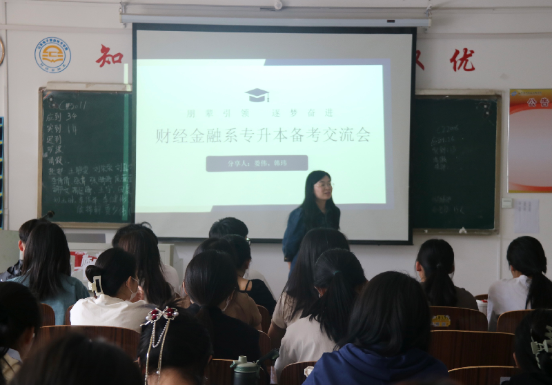 為提高我系2021級同學(xué)對專升本的認(rèn)識,明確升學(xué)目標(biāo),掌握備考技巧,提高學(xué)習(xí)能力,5月10日,財經(jīng)金融系在3210教室舉辦2021級專升本備考交流會。本次交流會邀請到2018級韓瑋、婁偉兩位升本成功的省級優(yōu)秀畢業(yè)生作經(jīng)驗(yàn)分享,會議由輔導(dǎo)員紀(jì)肖肖老師主持,財經(jīng)金融系21級同學(xué)代表參加。