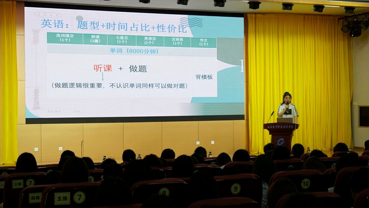 大會還邀請了2021級袁雯和李紅宇兩位同學(xué),作為成功升本的學(xué)生代表,分享備考經(jīng)驗(yàn)。他們結(jié)合自己的親身學(xué)習(xí)經(jīng)歷,向在場的同學(xué)們傳授了備考技巧與學(xué)習(xí)方法,同學(xué)們受益匪淺。