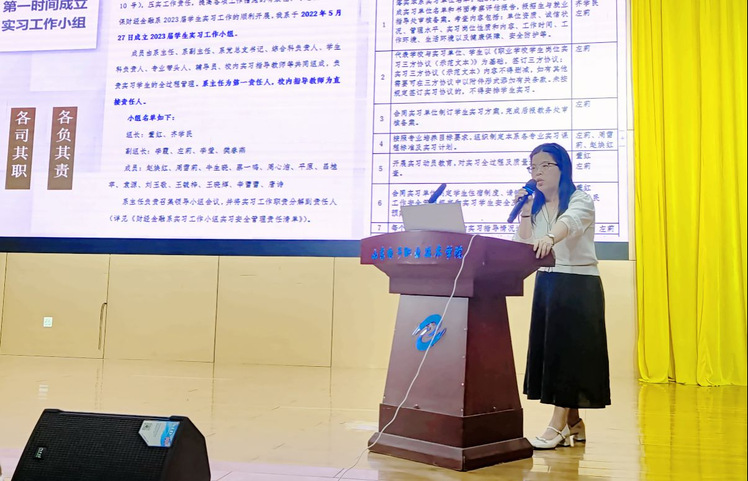 在實(shí)習(xí)工作部署環(huán)節(jié),副院長樊春燕從國家政策、學(xué)校要求、學(xué)院的組織安排、注意事項(xiàng)等方面進(jìn)行了全方位的介紹,幫助同學(xué)們更好地了解實(shí)習(xí)要求。