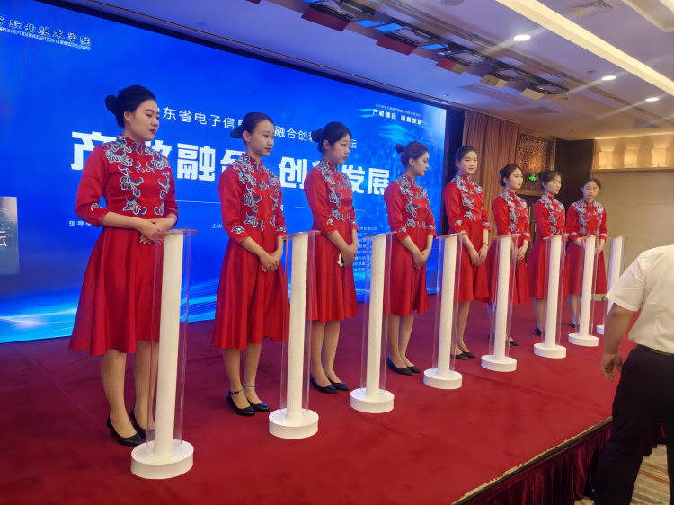■6月5日,山東電子職業(yè)技術(shù)學院在濟南市東方大廈舉辦山東省電子信息產(chǎn)教融合創(chuàng)新發(fā)展論壇。來自全省120余位專家學者匯聚一堂,共同探索職業(yè)教育產(chǎn)教融合的發(fā)展與實踐。李月老師帶領(lǐng)大學生藝術(shù)團禮儀隊同學對本次會議開展禮儀服務(wù)工作。