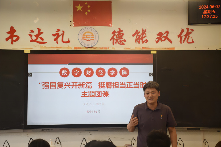 ■6月7日,數(shù)字財經(jīng)學院團總支開展了以“強國復(fù)興開新篇 挺膺擔當正當時”為主題的團課教育,由數(shù)字財經(jīng)學院團總支書記顏曉辰老師主講。