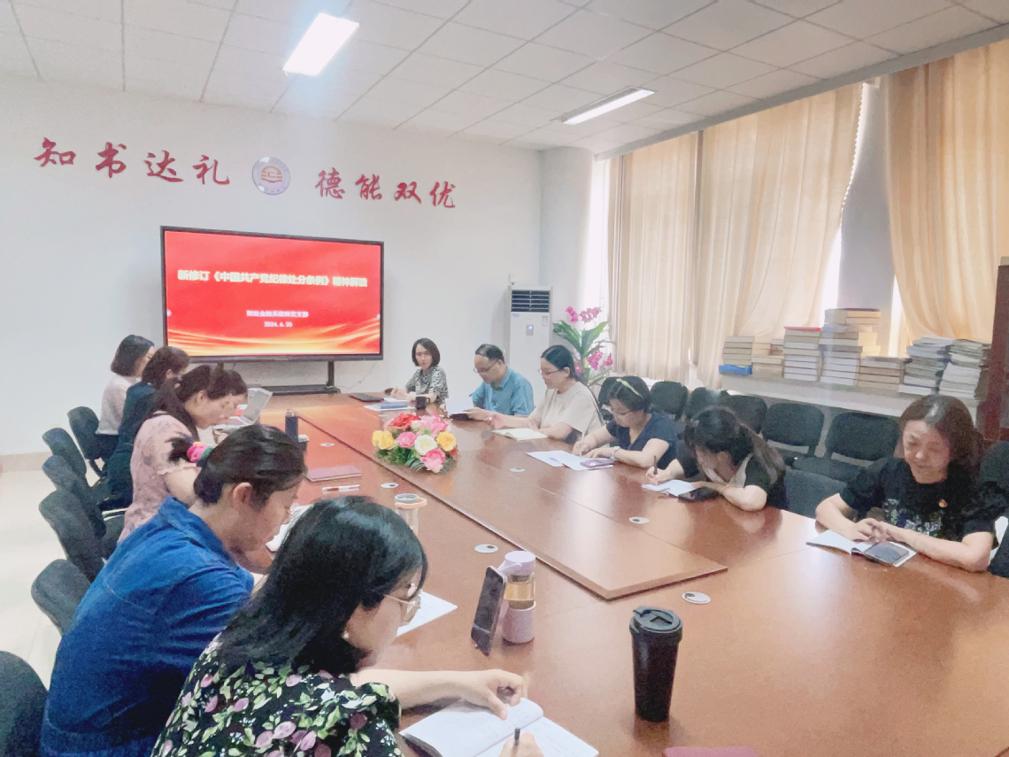 為全面加強對新修訂《中國共產(chǎn)黨紀律處分條例》(以下簡稱《條例》)的深入學(xué)習(xí)和貫徹執(zhí)行,6月20日下午,財經(jīng)金融系教師黨支部在綜合樓401室開展黨紀學(xué)習(xí)教育主題黨日活動,李冬蕓同志以“新修訂《中國共產(chǎn)黨紀律處分條例》精神解讀”為主題講授黨課,樊春燕同志主持活動,教師黨支部全體黨員參加。
