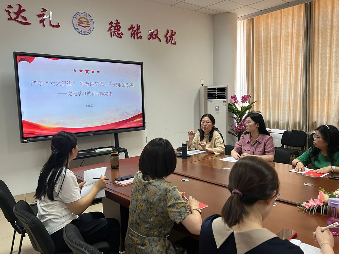 為深入學(xué)習(xí)和全面貫徹執(zhí)行《中國共產(chǎn)黨紀(jì)律處分條例》,根據(jù)學(xué)校黨紀(jì)學(xué)習(xí)教育的工作部署,6月27日下午,財經(jīng)金融系教師黨支部在綜合樓401室開展黨紀(jì)學(xué)習(xí)教育主題黨日活動,支部書記樊春燕同志以“嚴守六大紀(jì)律,爭做講紀(jì)律守規(guī)矩的表率”為主題講授主題黨課。