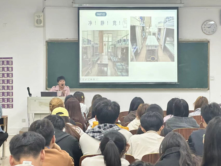 會議中李月老師對公寓安全標準進行全面而詳盡的解讀。圍繞安全用電、防火防盜、床簾隱患、違禁查處等多個角度講解公寓安全管理的各項具體要求。同時,她還介紹內(nèi)務(wù)整理的標準,從床鋪的整潔度、物品的有序擺放到公共衛(wèi)生區(qū)域的清潔維護。特別強調(diào)學生干部在公寓管理中的引領(lǐng)與示范作用,以實際行動帶動周圍的同學共同遵守公寓管理規(guī)定,共同營造積極向上的生活氛圍。