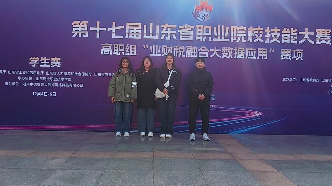 在“業(yè)財(cái)稅融合大數(shù)據(jù)應(yīng)用”賽項(xiàng)中,呂桂蘋、張娟老師帶領(lǐng)的王涵、楊奇朋、權(quán)利敏、呂曉彤團(tuán)隊(duì)迎難而上、積極創(chuàng)新,獲得三等獎(jiǎng)。