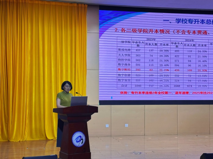為切實(shí)做好2026屆畢業(yè)生專升本與實(shí)習(xí)工作,為同學(xué)們提供精準(zhǔn)指導(dǎo),5月29日下午,財(cái)經(jīng)金融系在學(xué)術(shù)報(bào)告廳召開2026屆畢業(yè)生專升本及實(shí)習(xí)工作動(dòng)員部署會(huì)。基礎(chǔ)教學(xué)部任文娟主任受邀出席并做了題為《專升本數(shù)據(jù)分析與政策解讀》的主題報(bào)告,財(cái)經(jīng)金融系全體干部、實(shí)習(xí)指導(dǎo)教師、輔導(dǎo)員以及2026屆全體畢業(yè)生參加會(huì)議,會(huì)議由財(cái)經(jīng)金融系副院長(zhǎng)王燕主持。
