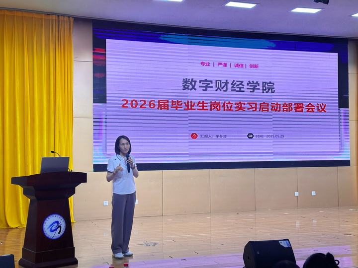 近日,財(cái)經(jīng)金融系在報(bào)告大廳隆重舉行了2026屆畢業(yè)生崗位實(shí)習(xí)啟動(dòng)部署大會(huì)。學(xué)院全體干部、實(shí)習(xí)指導(dǎo)老師、輔導(dǎo)員及421名2023級(jí)學(xué)生齊聚一堂,共同參加了此次大會(huì)。會(huì)議由財(cái)經(jīng)金融系黨總支副書記王燕主持。